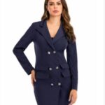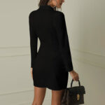 The elegant gold-tone buttons and deep V-neckline add a polished finish. This is an ideal piece for both corporate wear and evening events. Shop women’s dresses online and add this essential item to your collection for a sophisticated look that is always in style.