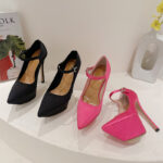 Introducing the Heidi platform pumps women’s heels, the perfect addition to any fashion-forward woman’s wardrobe. These shoes feature an eye-catching design, with buckle-fastening ankle straps and angular pointed toes that add a touch of edgy sophistication to any outfit.