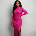 Turn heads in this striking hot pink ribbed dress. The perfect blend of comfort and style, this long-sleeved midi dress features a chic turtleneck neckline and a daring high side slit that adds a touch of modern elegance. Crafted from a soft, stretchy ribbed knit, this pink party dress is ideal for a night out, a special occasion, or any event where you want to make a bold statement.