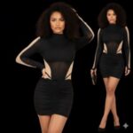 The elegant long sleeves and sophisticated high neck are perfectly contrasted by the bold mesh cutouts, which offer a modern, alluring style. The ruched mini skirt adds a flattering texture, ensuring a comfortable and perfect fit. This dress is a must-have for a night out, cocktail parties, or any special occasion where you want to stand out. When you want to buy trendy dresses online, this piece delivers on both style and impact.